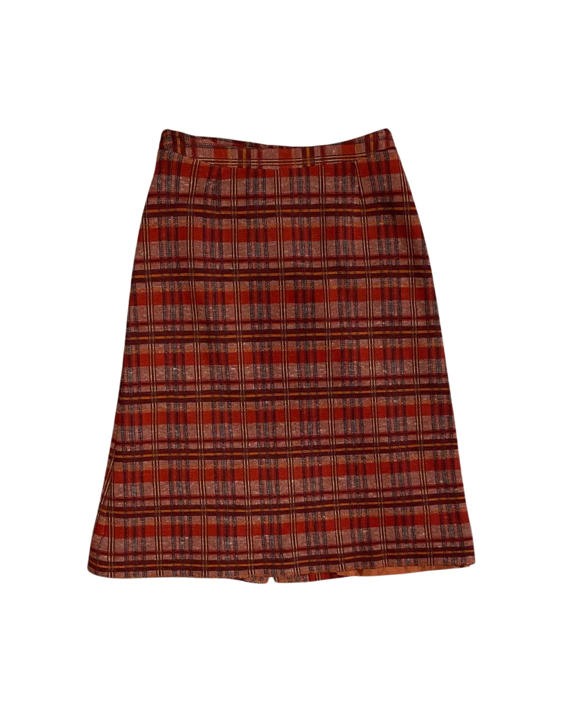 Cacharel Red + Beige Plaid Skirt Suit 1970s Vintage France – Size 42