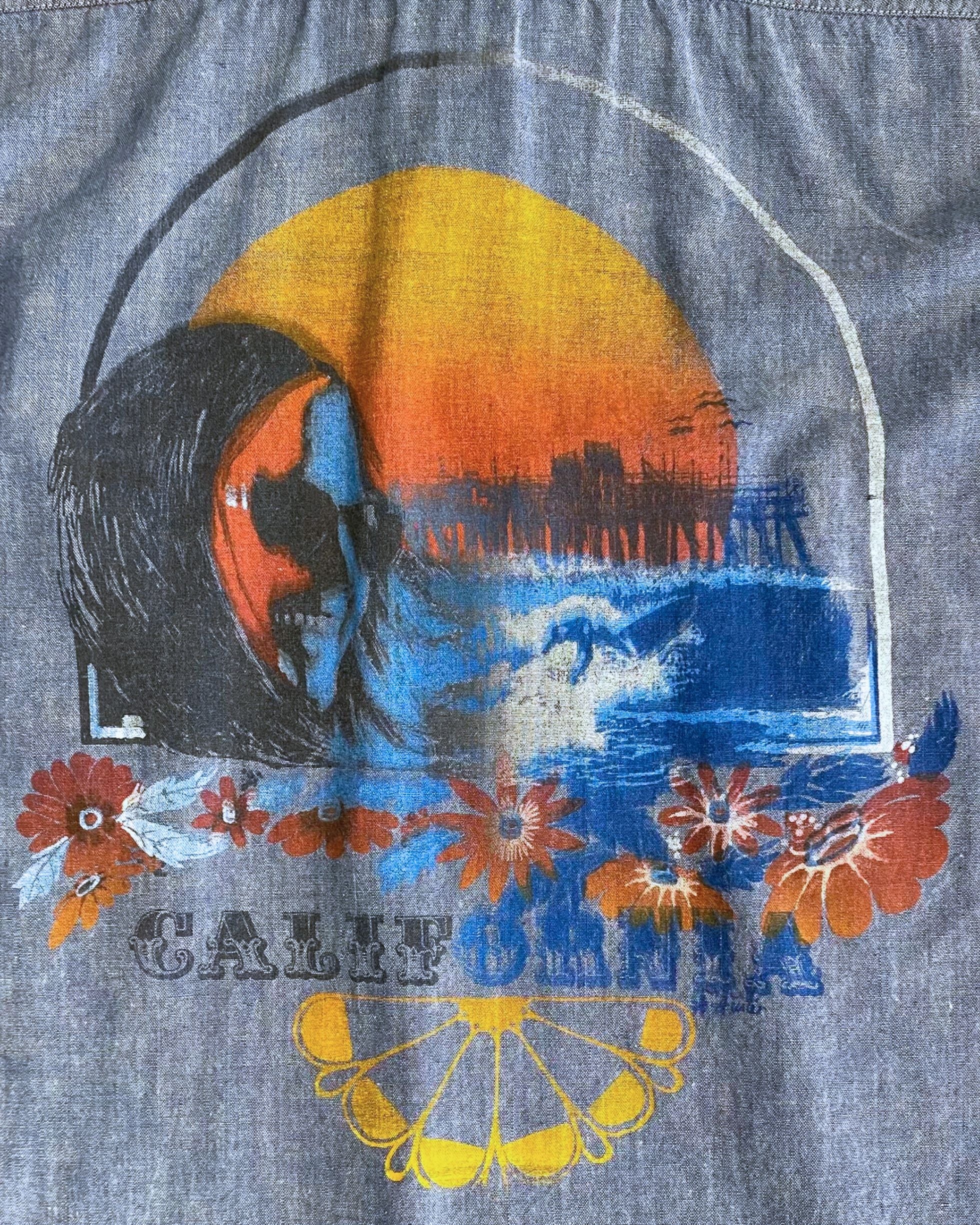 California Blue Chambray Button Down Shirt MEDIUM 1970s