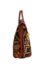 Vintage Kilim Carpet Bag Tote with Leather Handles and Flap Closure | 1980s