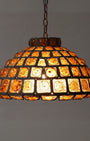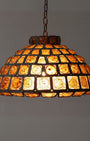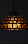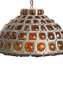 Handcrafted with precision, the pendant’s domed metal frame houses dozens of amber glass elements, each featuring organic patterns and rich tonal variations. The textured, bubbly surface of the glass captures and diffuses light beautifully, creating an atmosphere of warmth and elegance.