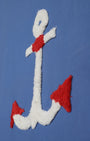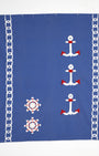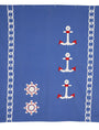 This vintage chenille drape embodies the bold maritime aesthetic of the 1950s-60s. Featuring a deep blue cotton background with plush white and red chenille appliqués, its classic nautical motifs—anchors, ship wheels, and chain links—evoke the romance of mid-century coastal living.