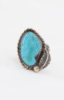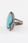 Turquoise + Sterling Silver Oval Ring w Leaf sz 7.25