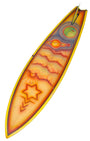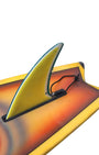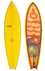 Shaped in Newport Beach, California, this board features a classic yellow deck with company logo and a breathtakingly detailed airbrushed bottom.