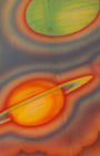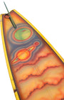 The cosmic imagery—complete with planets, stars, and vibrant atmospheric patterns—exemplifies the free-spirited creativity that defined the era. With its stunning cosmic graphics and tie to the collaborative spirit of surfboard artisanship, it pays homage to the countercultural and artistic movements of the 1970s.