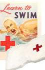 Original 1940s Red Cross "Learn to Swim" Poster and Kickboard