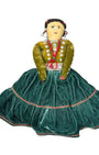 Traditional Native American Folk Art Doll with Velvet Dress, Circa 1940s