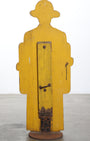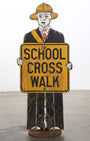 Capture the charm of small-town Americana with this vintage wooden crossing guard sign, likely from the 1940s. Its hand-painted figure, donning a firefighter-style hat and holding a “School Cross Walk” sign, harks back to a time when safety and simplicity went hand-in-hand.
